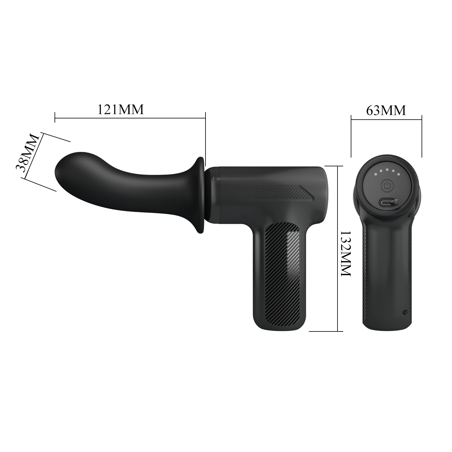 Esta pistola de masaje súper potente tiene 5 configuraciones de empuje y un cabezal de silicona reemplazable. Lo más importante es que el motor más potente dentro de la pistola de masaje te brindará la experiencia erótica más poderosa y una vibración increíble y una sensación de empuje. Si prefieres que tus juguetes tengan características poderosas, elige la última pistola de masaje súper poderosa de Pretty Love, resolverá y liberará todo tu estrés y te brindará un placer impresionante y grandioso.